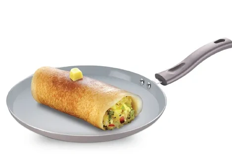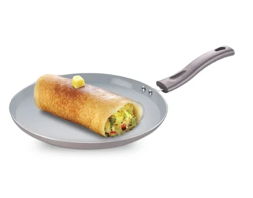Made from premium-grade aluminium, it delivers fast and even heating for perfectly cooked rotis, dosas, pancakes, and parathas. The dual-layer ceramic coating provides superior durability and smooth release, while the metal spoon-friendly surface resists scratches and extends lifespan.