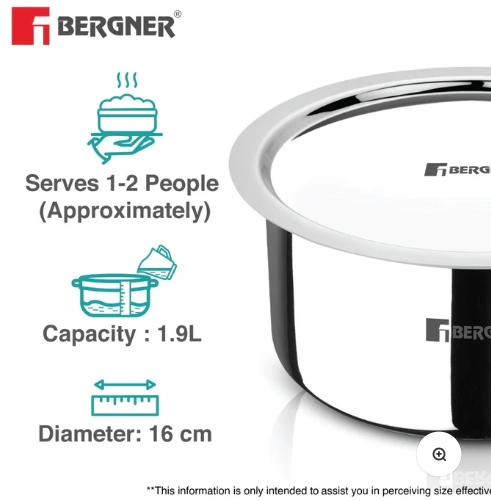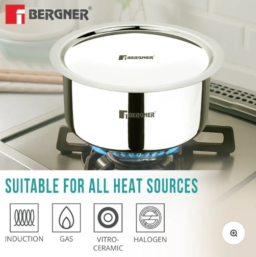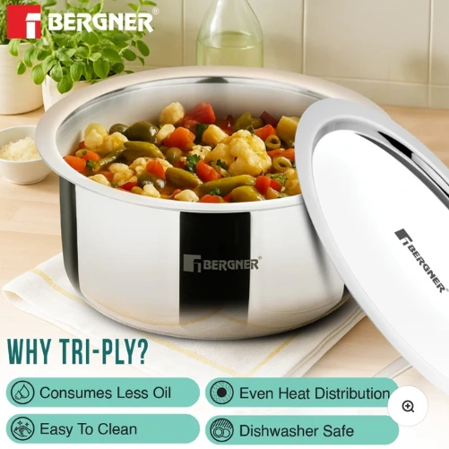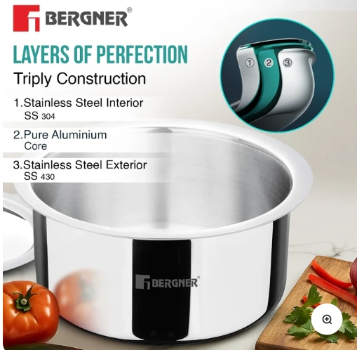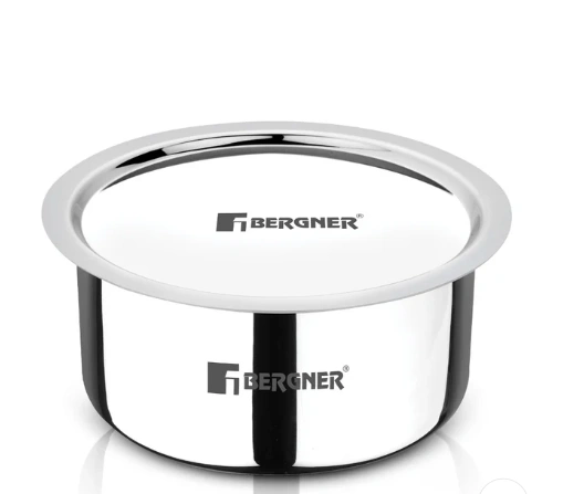 Bergner Argent TriPly Stainless Steel with Stainless Steel Lid, Small Topia/Patila with Stainless Steel Lid, Healthy, Non-Toxic, Food Safe, Durable – Induction and Gas Stove Ready