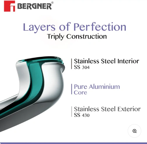 Heat Distribution : Tri-ply construction ensures even heat distribution, preventing burnt grains and guaranteeing consistently cooked rice