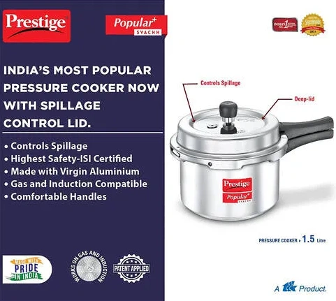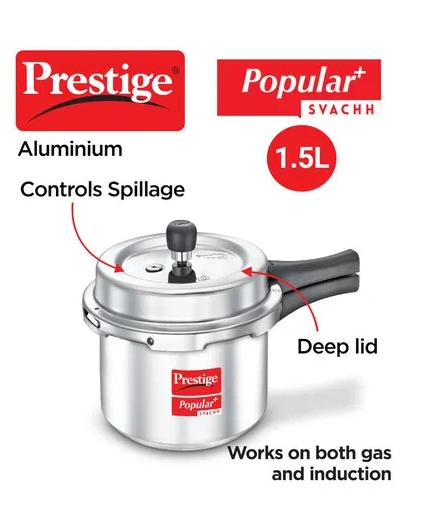 Prestige Popular Plus Svachh Virgin Aluminium Spillage Control Pressure Cooker (Silver)