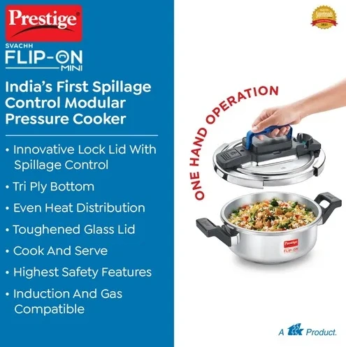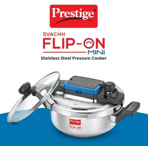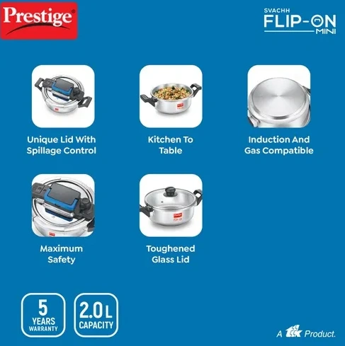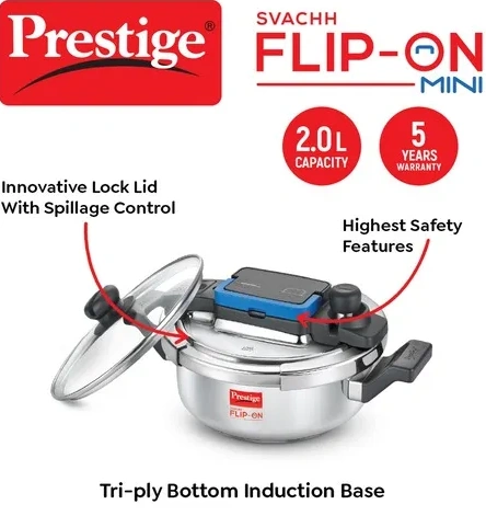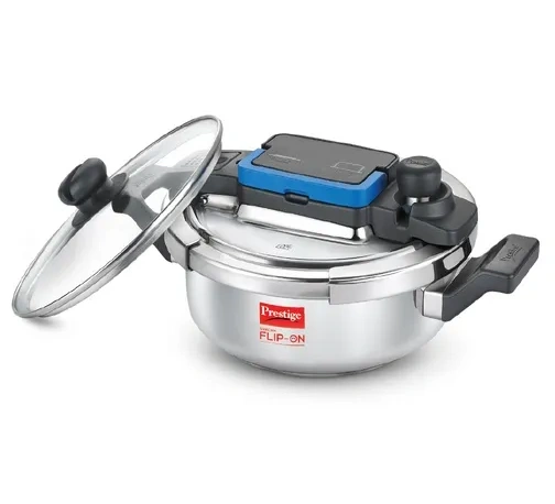 Prestige Svachh Flip-on Stainless Steel Spillage Control Pressure Cooker with Glass Lid, (Silver)