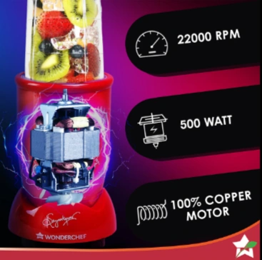 - Powerful Motor: The compact yet powerful machine grinds the toughest of chutneys and masalas, and ensures nutrition extraction from all fruits and veggies thanks to its incredibly high speed of 22,000 RPM, which is almost twice that of normal mixer-grinders