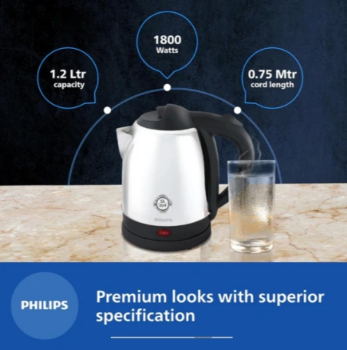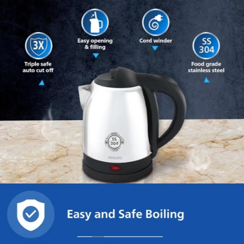 Philips 1.5 L Kettle with 25% thicker body for longer life and triple safe auto cut off – HD9373/00
