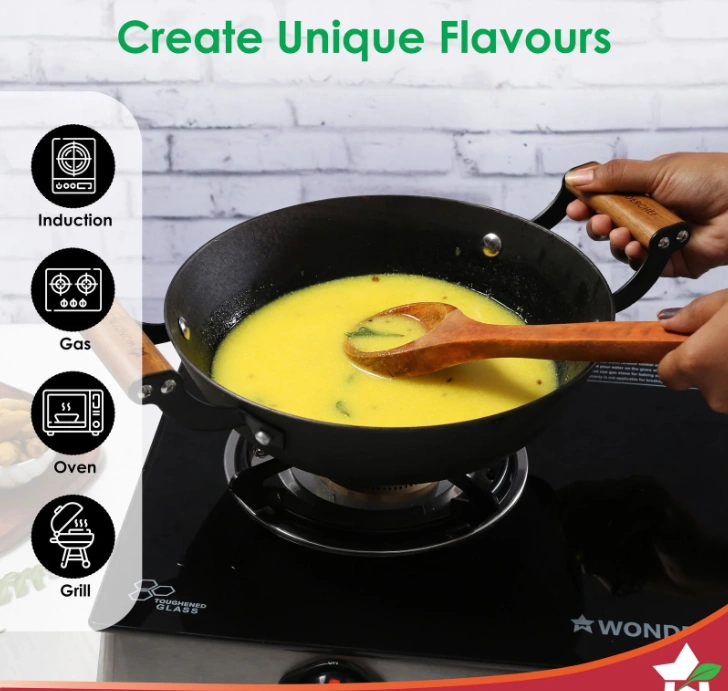 - Compatible with Multiple Cooktops: Ferro Cookware is compatible with multiple cooktops like gas stove, induction stove, and electric cooktop.