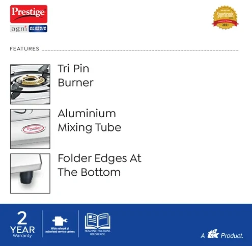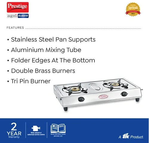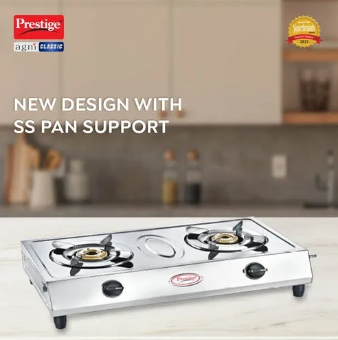 Bring home the Prestige Agni Classic 2-Burner Gas Stove for a perfect combination of safety, style, and efficiency in your kitchen.