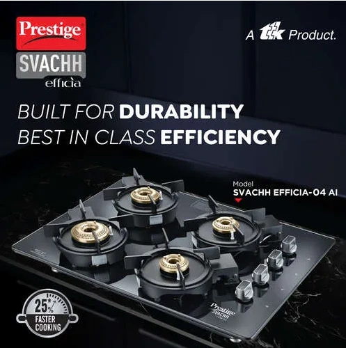 The Prestige Svachh Efficia HOB 04 AI combines performance, style, and convenience, making it ideal for modern homes and large family cooking.