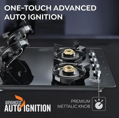 Cook efficiently and safely with the Prestige Svachh Efficia HOB 04 AI, a 4-burner built-in gas hob designed for modern kitchens. Featuring high-performance brass burners with multi-spark auto ignition, this hob delivers uniform flame for faster cooking and energy efficiency.