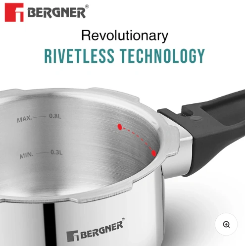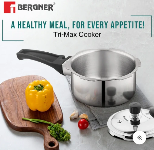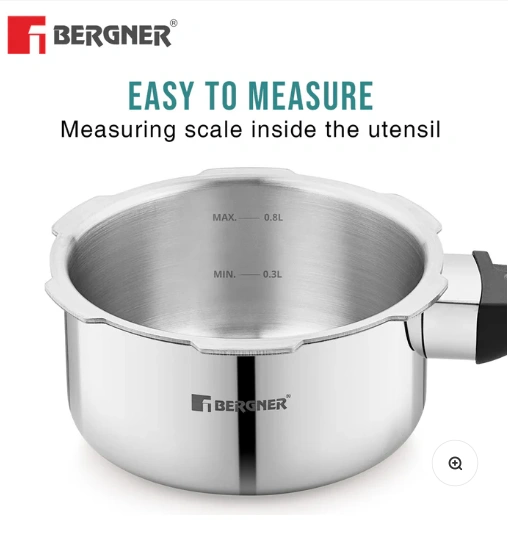 Bergner Tri-Max Junior TriPly Pressure Cooker, Triply Heavy Bottom Outer Lid Mini Pressure Cooker, 1 Pc Free Safety Valve, Measuring Scale Inside – Induction Bottom and Gas Stove Ready