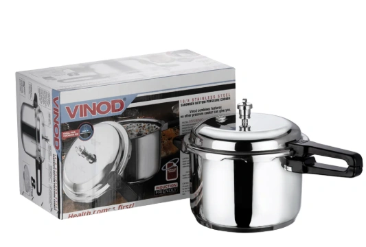 Cook meals quickly, safely, and efficiently with the Vinod 18/8 Stainless Steel Outer Lid Pressure Cooker. Made from premium 18/8 stainless steel, this pressure cooker is designed for durability, corrosion resistance, and even heat distribution. Its outer lid design provides enhanced safety, while the sturdy handles and precise sealing ensure hassle-free cooking for everyday use.