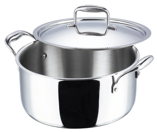 Prepare meals efficiently and in style with the Vinod Platinum Triply Stainless Steel Saucepot with Lid. Crafted with triply stainless steel construction, this saucepot ensures even heat distribution, superior durability, and energy efficiency, making it ideal for soups, sauces, and gravies. The snug-fitting lid helps retain moisture and flavor, while the induction-friendly base ensures compatibility with all cooktops.